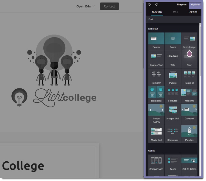 Bouwstenen: Gebruik drag-and-drop bouwstenen om uw website te ontwerpen. Deze blokken zijn aanpasbaar, van content tot lay-out.